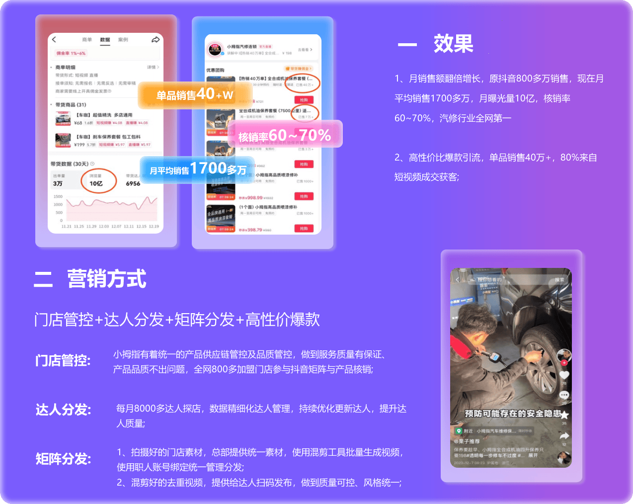 小拇指有着统一的产品供应链管控及品质管控,全网800多加盟门店参与抖音矩阵与产品核销;
